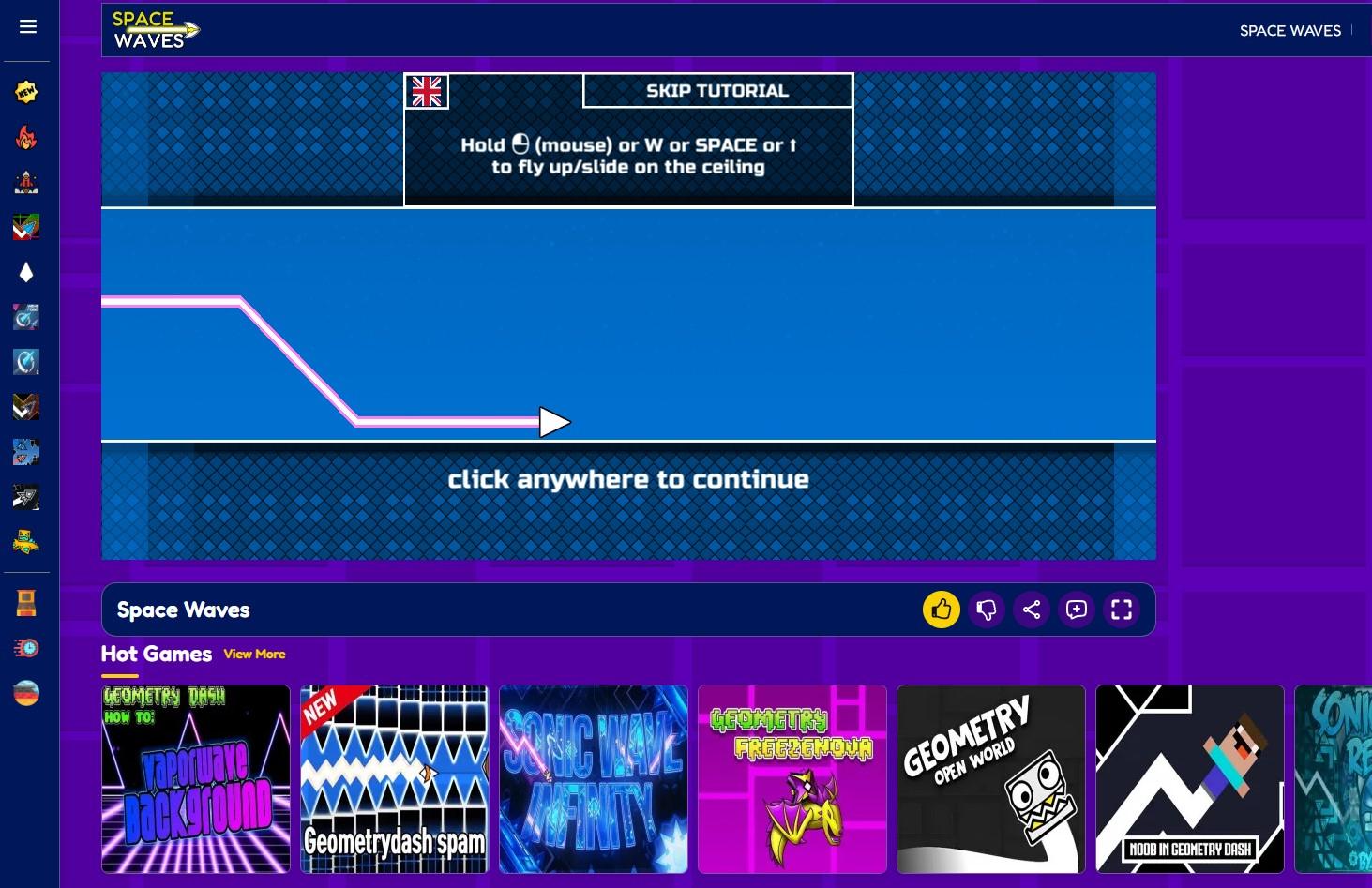 For those who like fast-paced, challenging games with a steady progression with each gameplay, Space Waves is a great pick. If you're a fan of Geometry Dash who wants to improve their wave control abilities or just someone searching for a fun arcade game that tests their reflexes, This is perfect for you. You learn something new with every level, and you become better at it with every setback. In the turbulent cosmos of Space Waves, only the most determined and focused surfers will make it to the end of the course, so fasten your seatbelt and maintain a steady cadence.