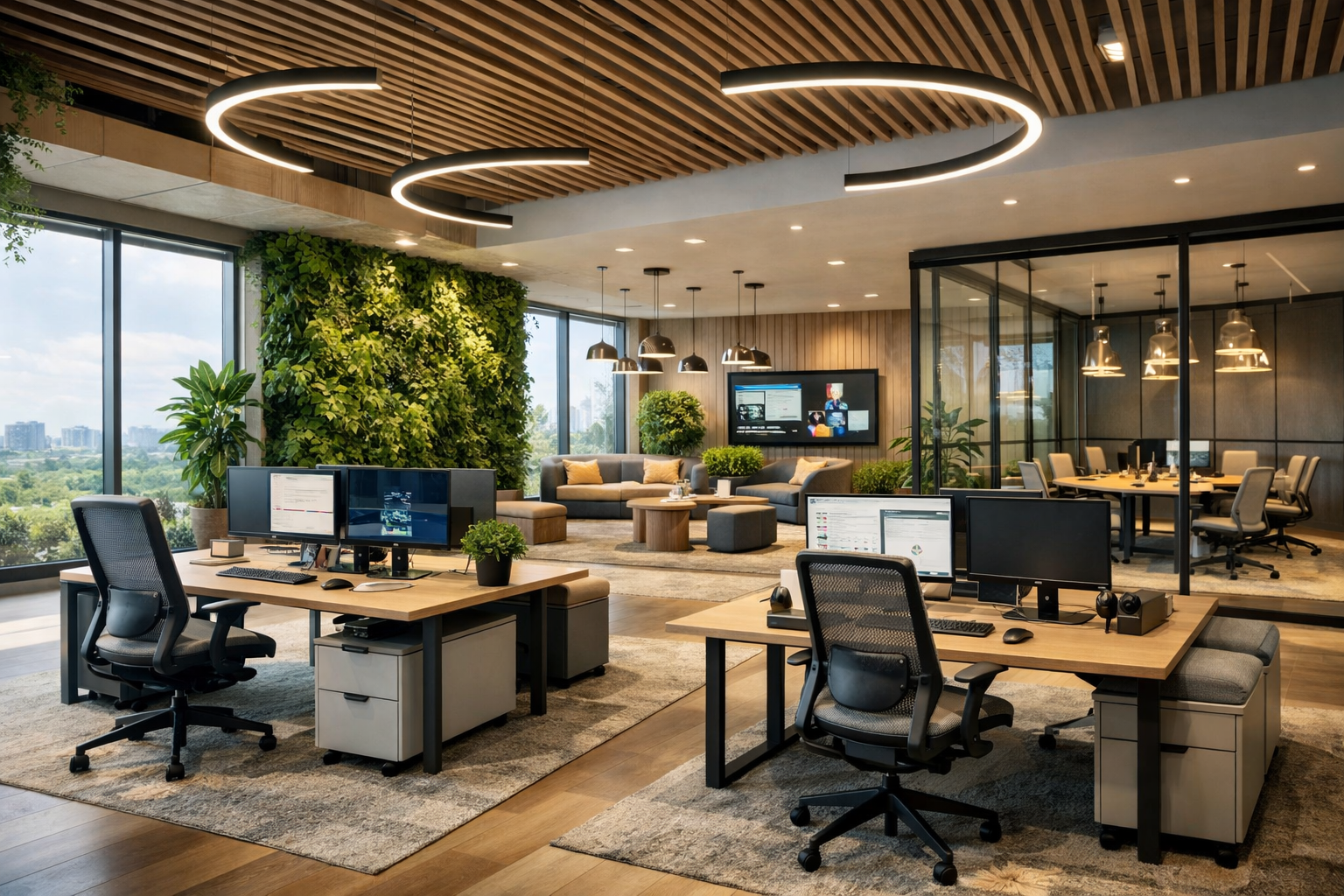 Lighting plays a critical role in workplace performance. Modern offices are focusing on: