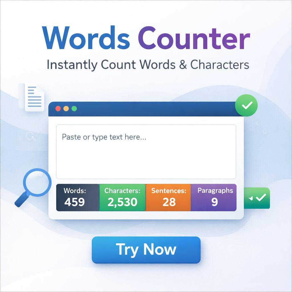 A word count checker works with a character counter to show clear results. However, different tools may use different methods to count characters. Because of this, your final numbers may not match perfectly.