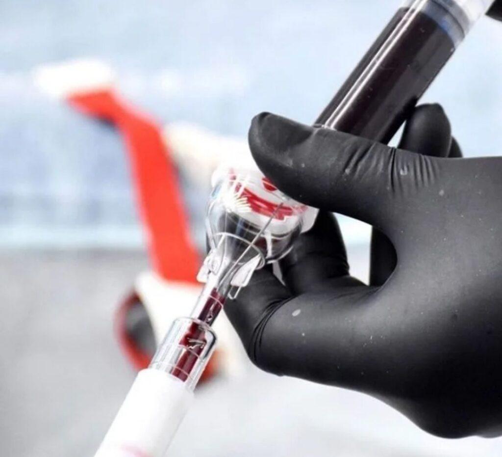 A small amount of blood is drawn from the patient. The blood is then processed in a centrifuge to separate platelet rich plasma.