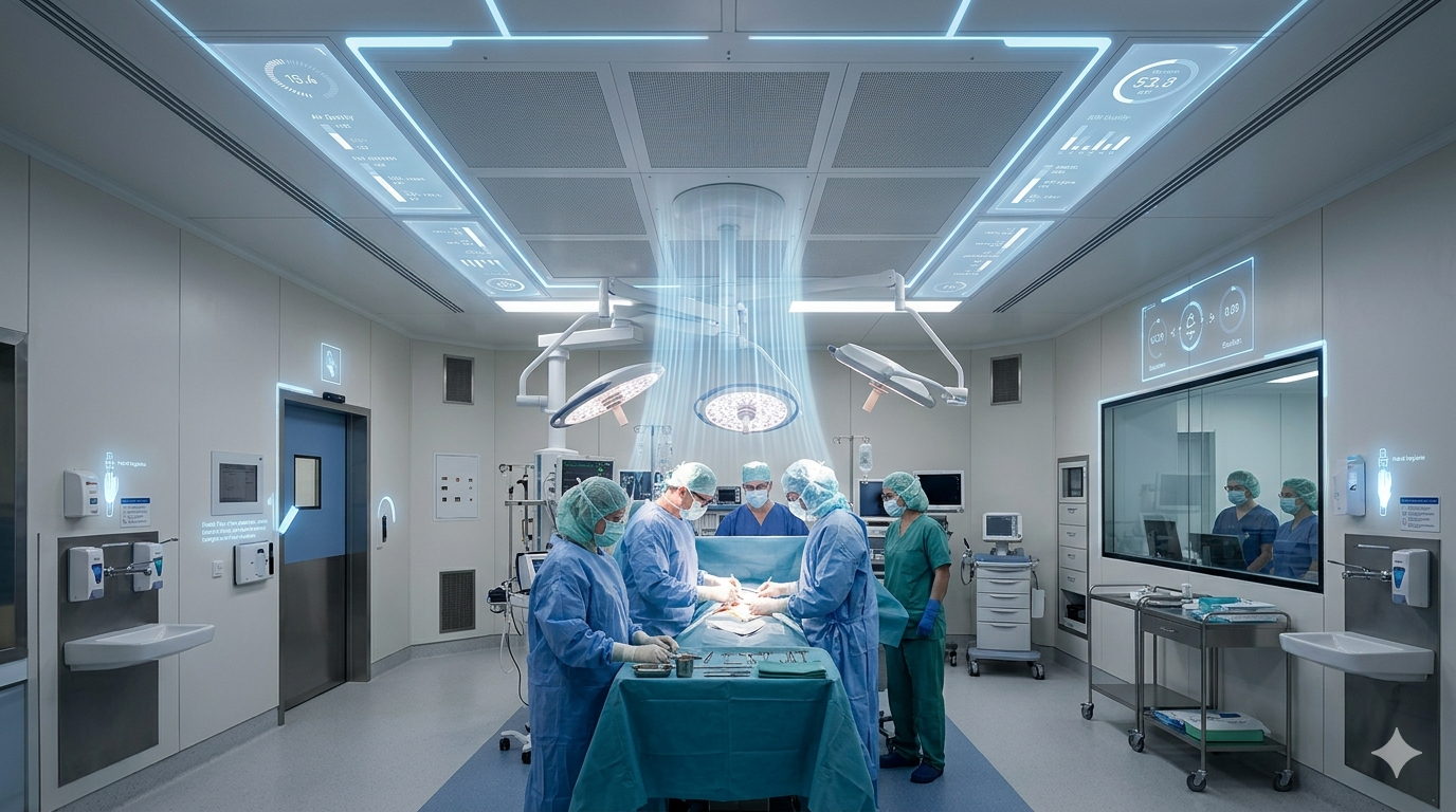 Laminar airflow systems are seamlessly integrated with modular OT infrastructure.