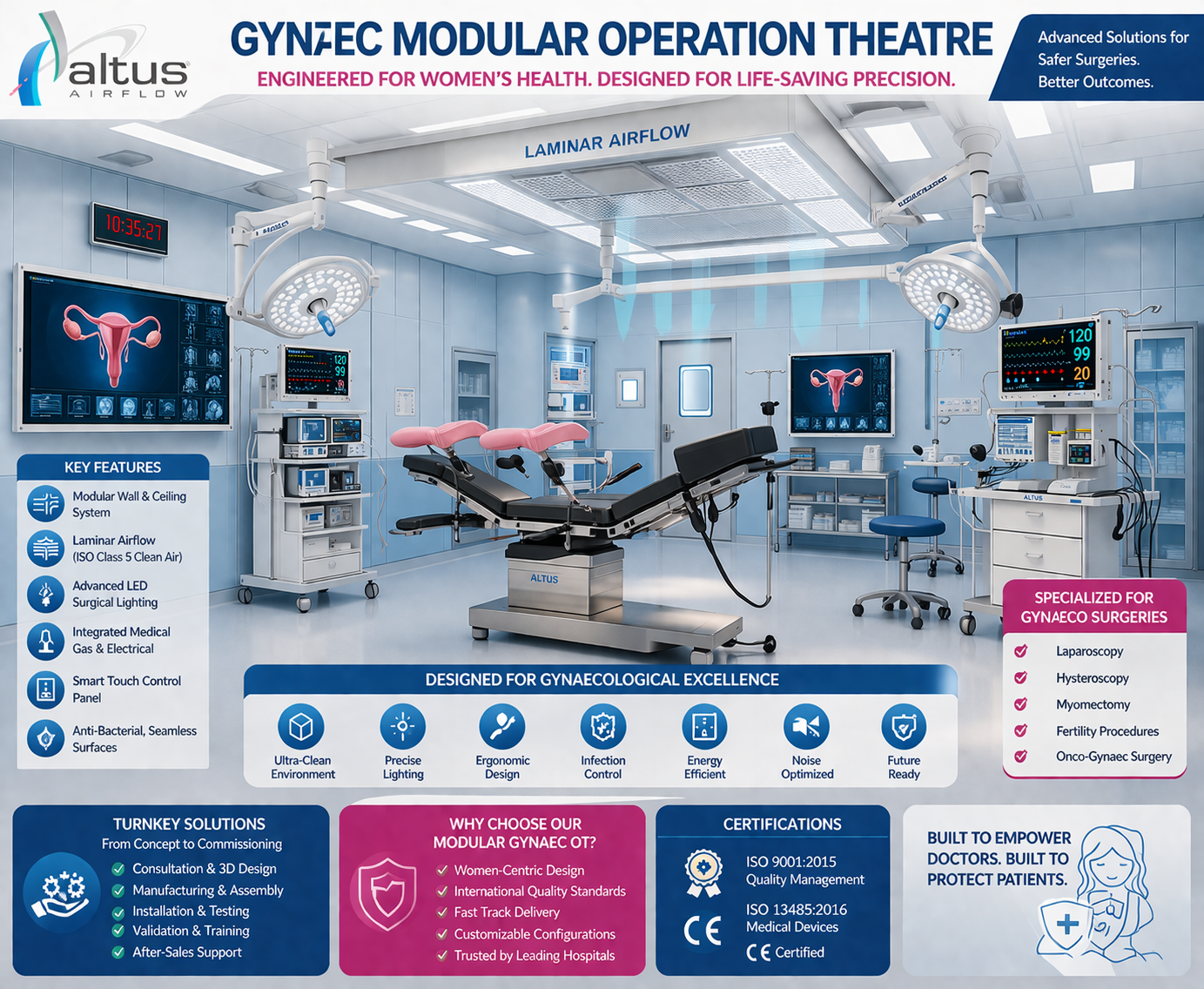 Maintaining sterility is critical in gynecological procedures. These OTs are designed to minimize contamination and ensure patient safety.