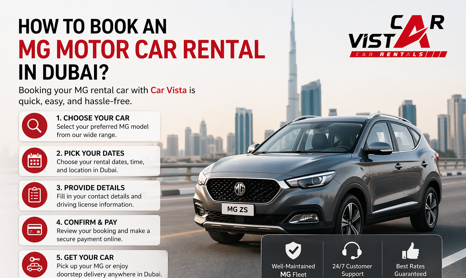 Booking an MG car rental in Dubai is a simple process that can be completed online or through a service provider like Car Vista. The process is designed to be quick, user-friendly, and efficient.