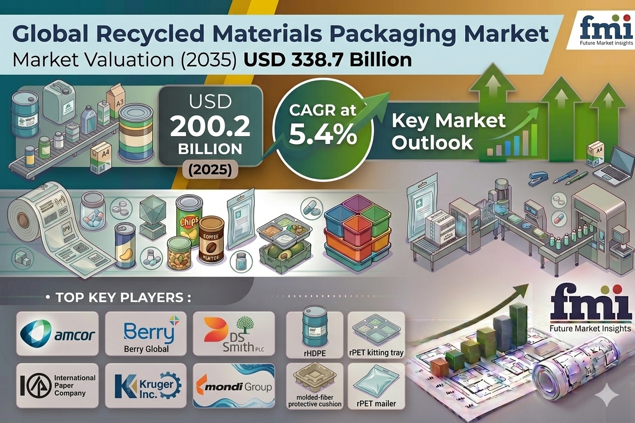 Recycled Materials Packaging Market Size to Grow from USD 200.2 Billion in 2025 to USD 338.7 Billion by 2035