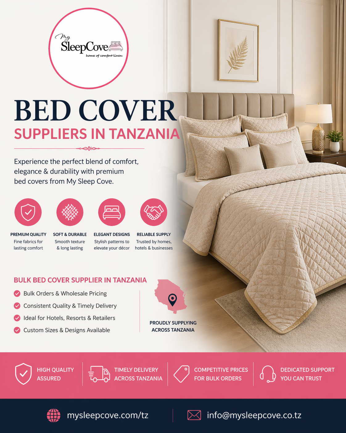 When selecting bed cover suppliers in Tanzania, it is important to choose a brand that offers reliability and excellence. My Sleep Cove stands out for several reasons: