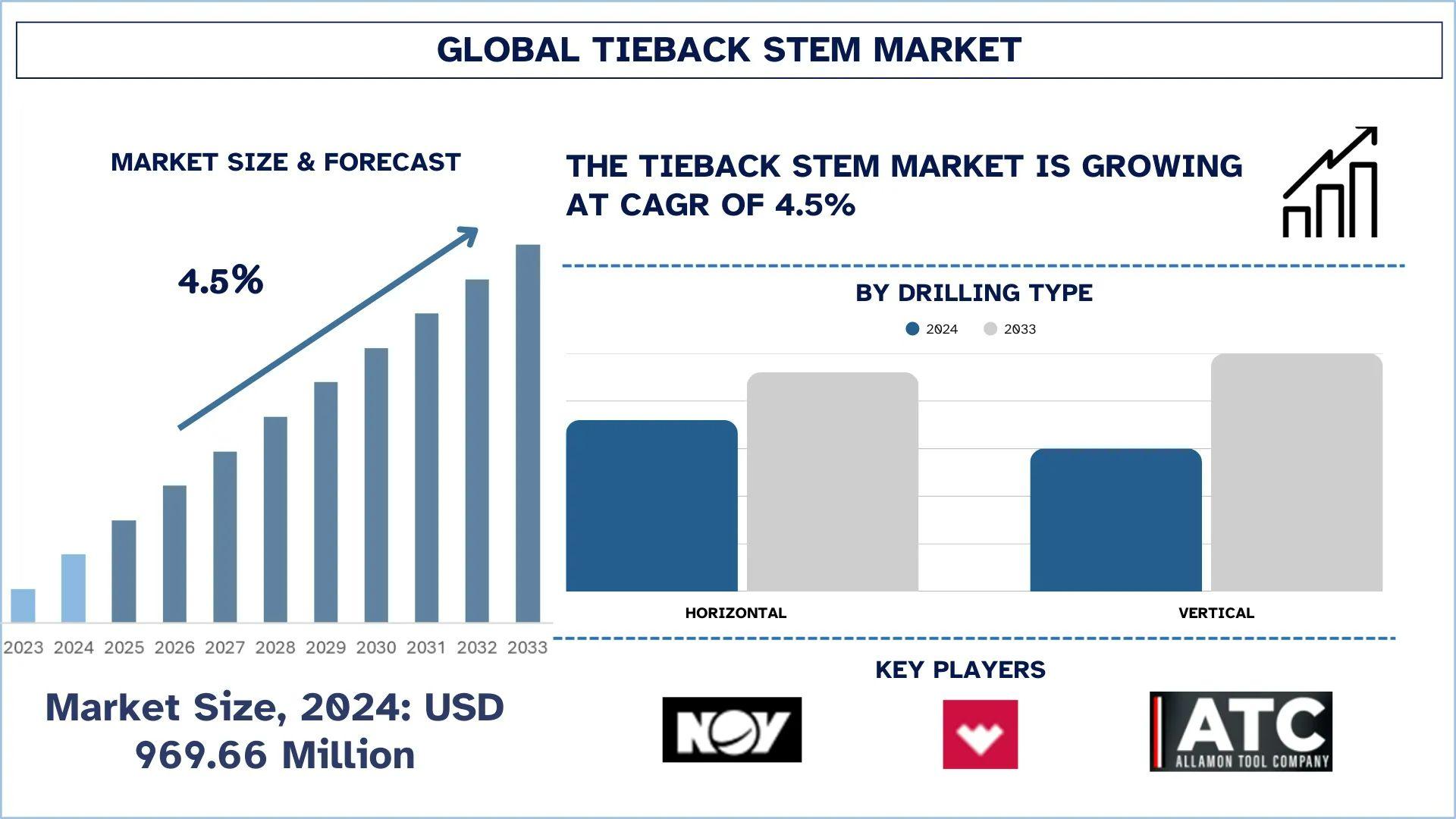According to UnivDatos analysis, the rising deepwater and ultra-deepwater exploration is a major factor driving the growth of the tieback stem market. As per their “Tieback Stem Market” report, the global market was valued at USD 969.66 million in 2024, growing at a CAGR of about 4.5% during the forecast period from 2025 - 2033 to reach USD million by 2033.