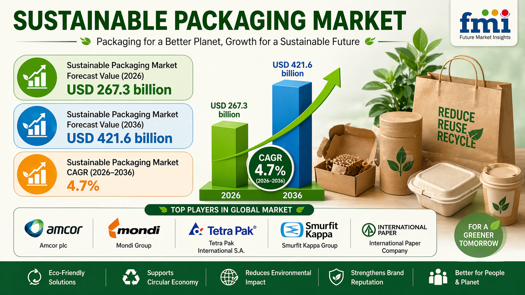 Sustainable Packaging Market to Reach USD 421.6 Billion by 2036 at 4.7% CAGR Amid Rising Regulatory and Environmental Compliance