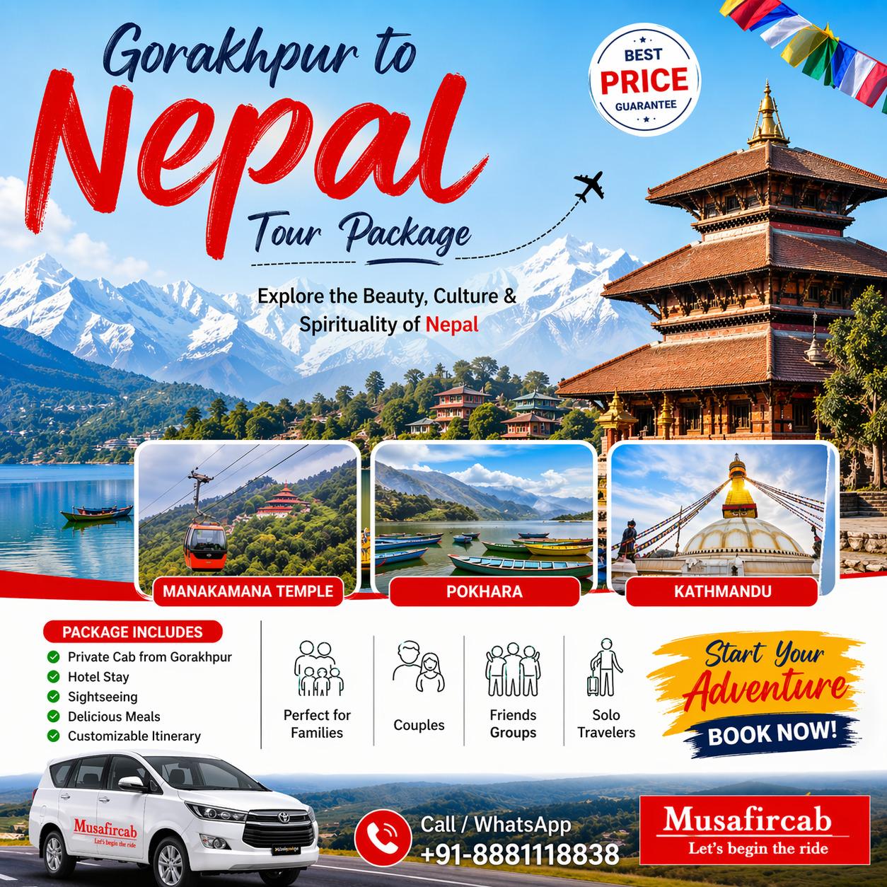 Start your amazing trip from Gorakhpur to Nepal with Musafircab, offering perfectly crafted tour packages that combine adventure, spirituality, and cultural exploration—all at budget-friendly prices